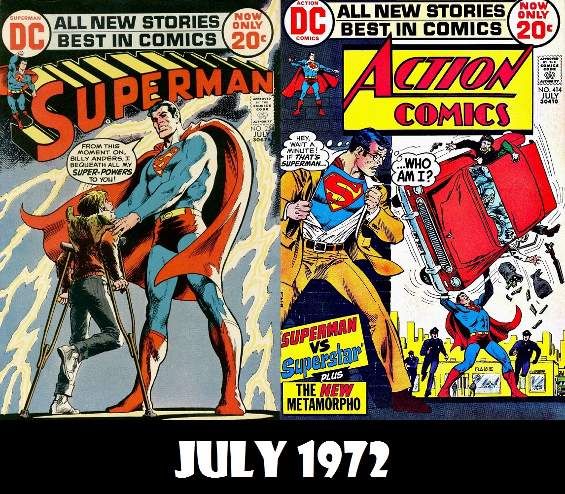 Ah, July 1972. A time for heat, fireworks, groovy tunes and, of course, Superman comics! In today’s episode, we have an email, Superman turning into a Captain Marvel wannabe, Clark Kent’s adventure in babysitting, Superman vs. Superman? and Metamorpho! All that, plus ads and we see what else was published this month. Not bad for 1 episode, eh?