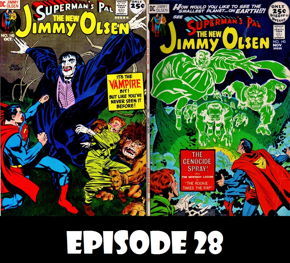 Greetings! Thank you for downloading Episode 28. This time out, we take our last look at Kirby’s run on the Jimmy Olsen title by experiencing Jack Kirby’s version of some classic monsters. It’s far out!